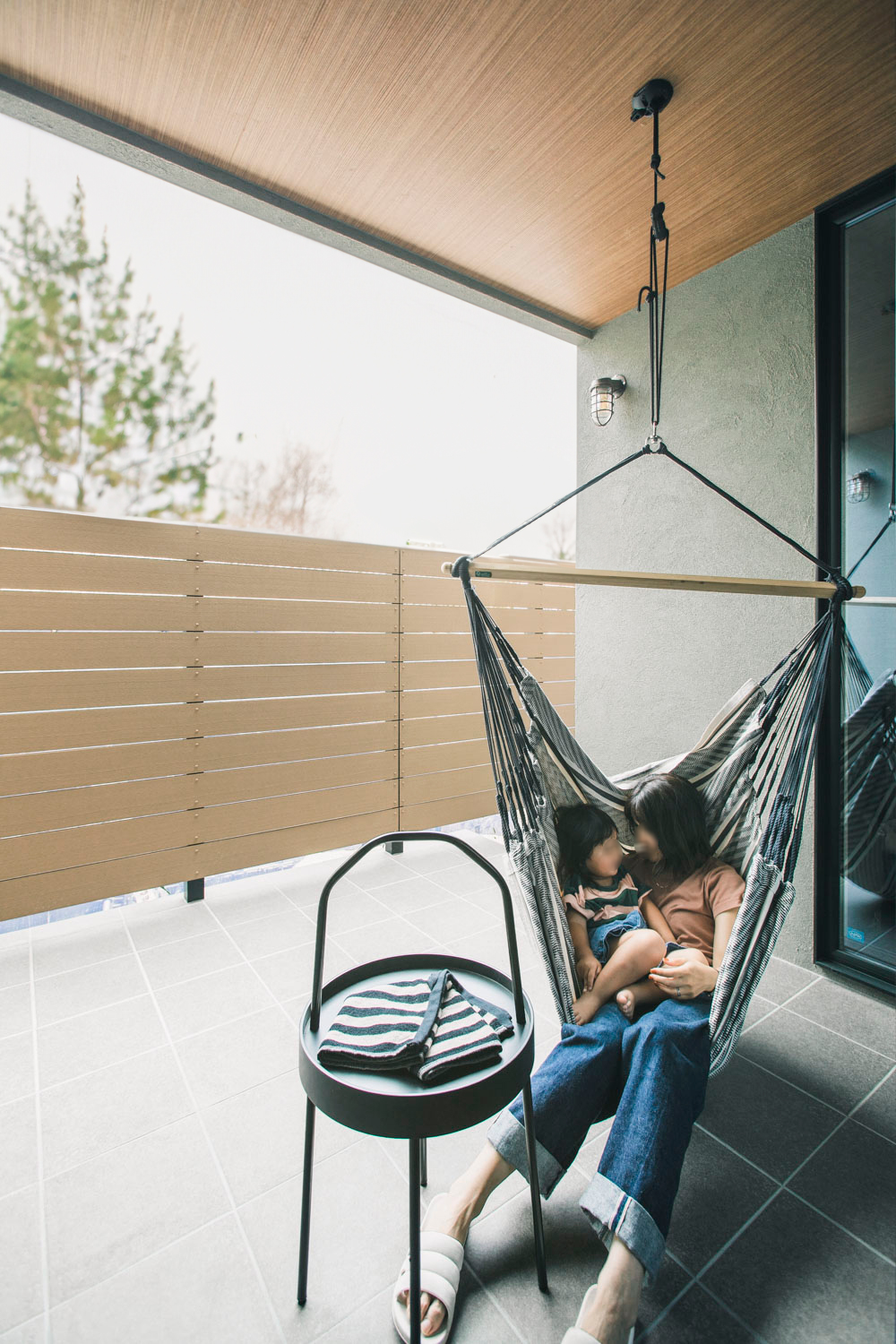 最終的にネットを付けてハンモックのような使い方ができるようにしました。