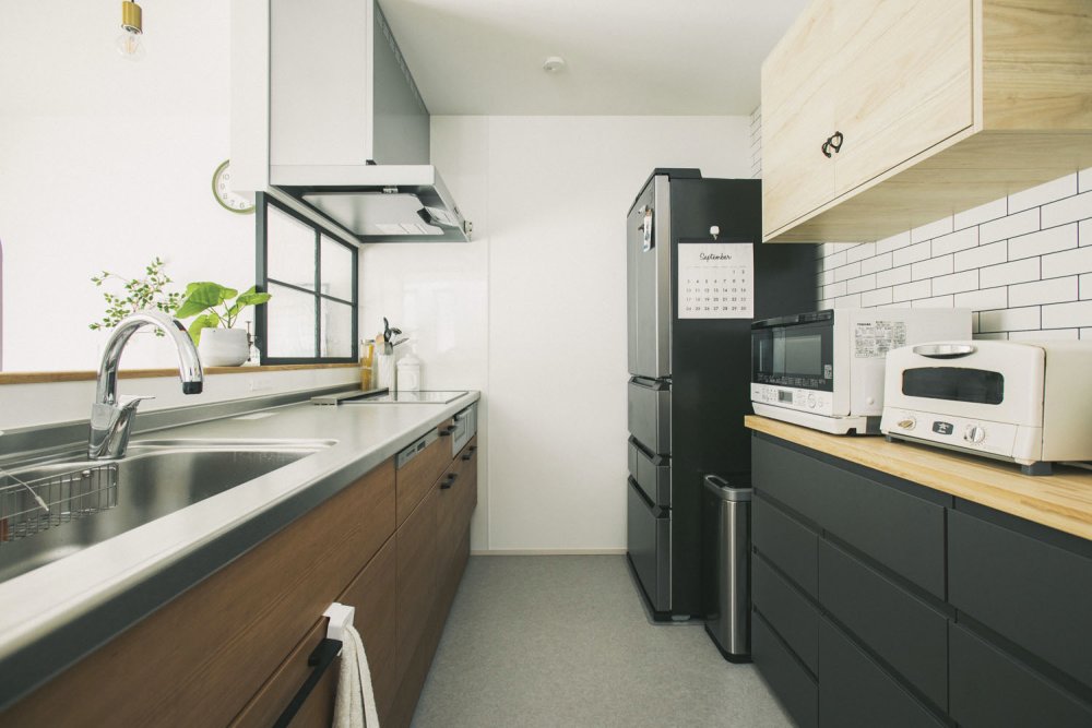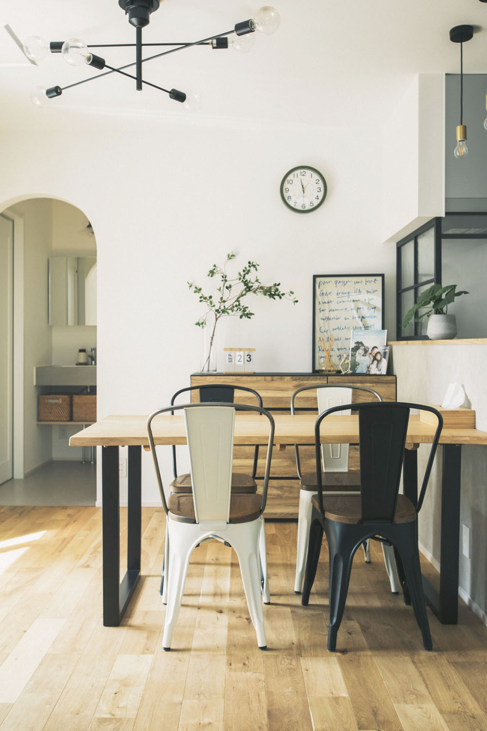 白とグレーをベースにして、木と黒の色味で統一しました!