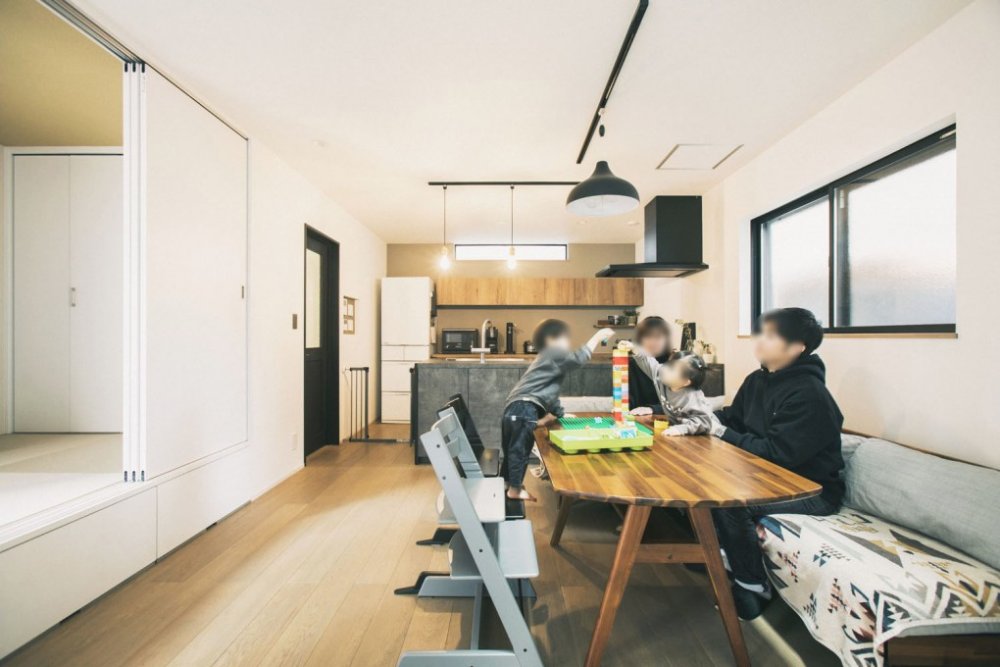 小上がりの畳スペースは、お子様の遊び場スペースにもなる。