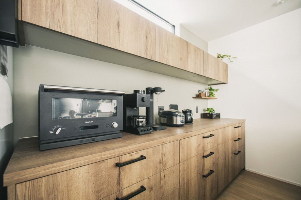 スタイリッシュな家電が、キッチン背面のクロスと絶妙にマッチしている。