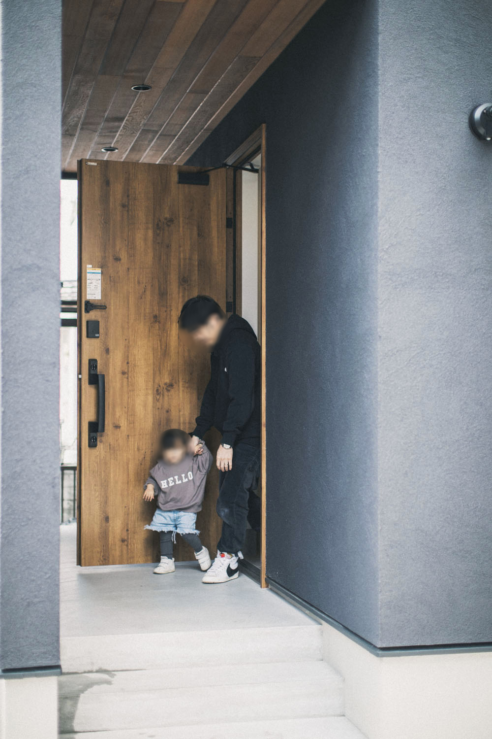 「玄関スペースの軒天と、目隠し壁がお気に入りです」とご主人。