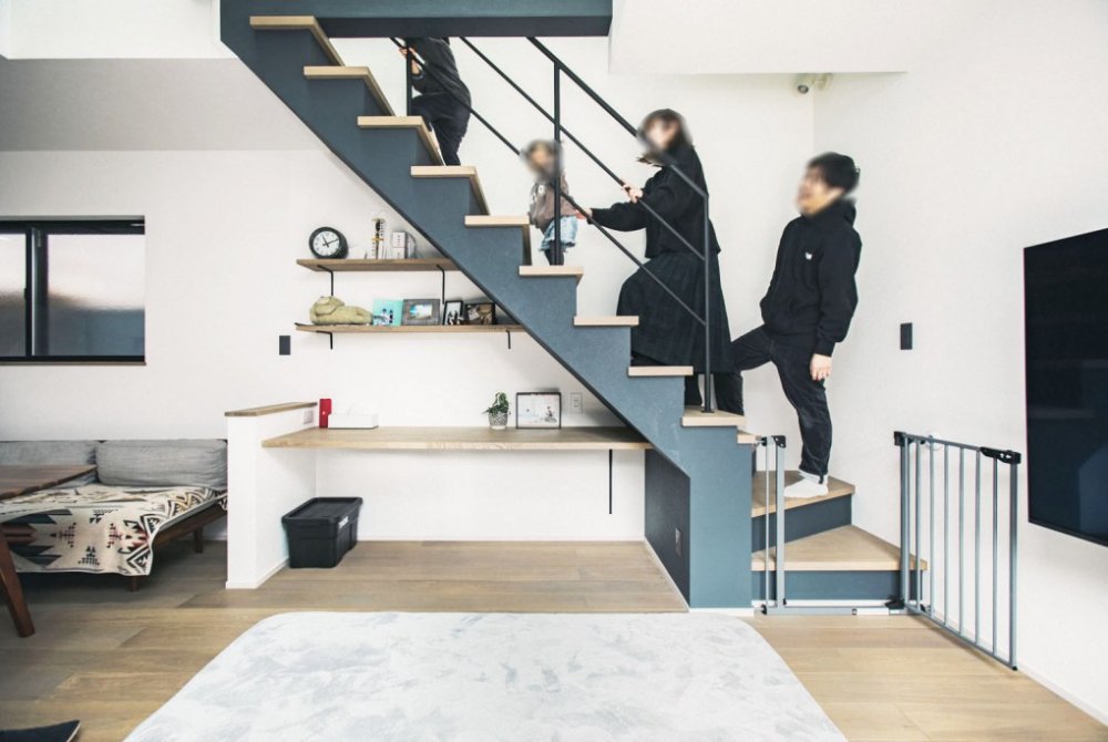 階段下には、「将来、子どもが宿題をできるように」と造作カウンターを設置。